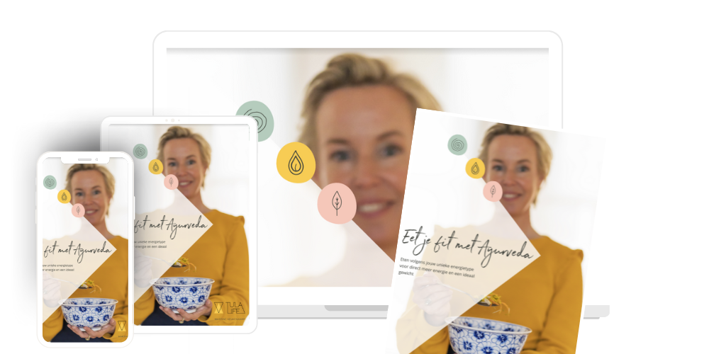Bestel dan hier mijn e-kookboek Eet je fit met Ayurveda met meer dan 50 lekkere en makkelijke recepten en kant-en-klare weekmenu's.